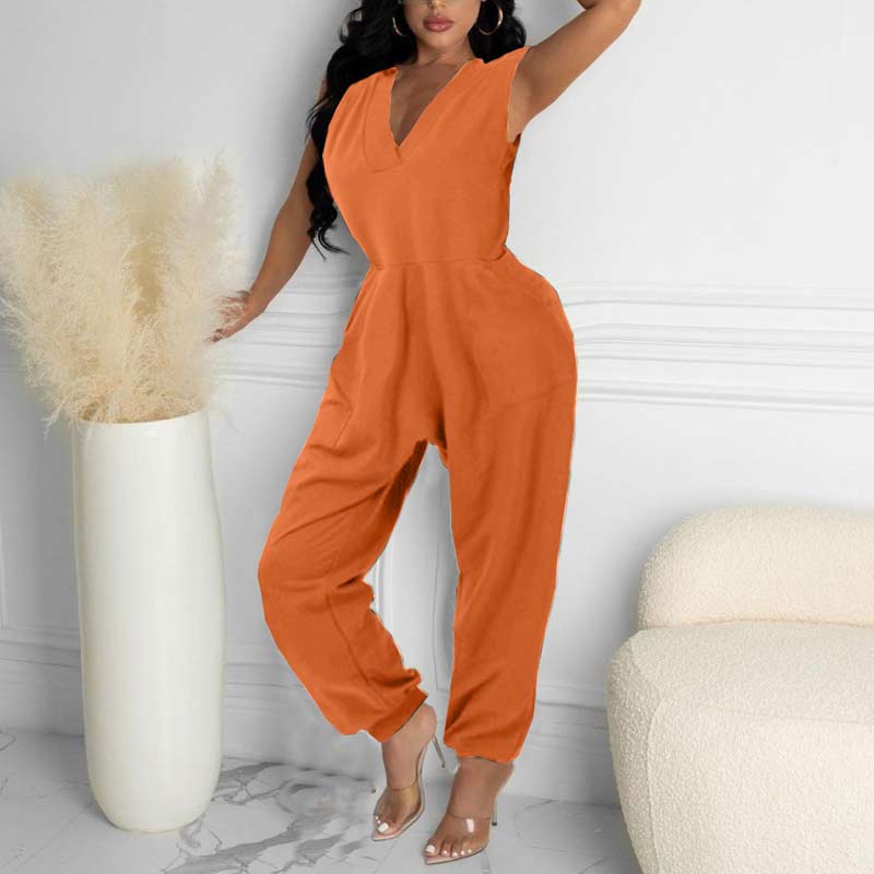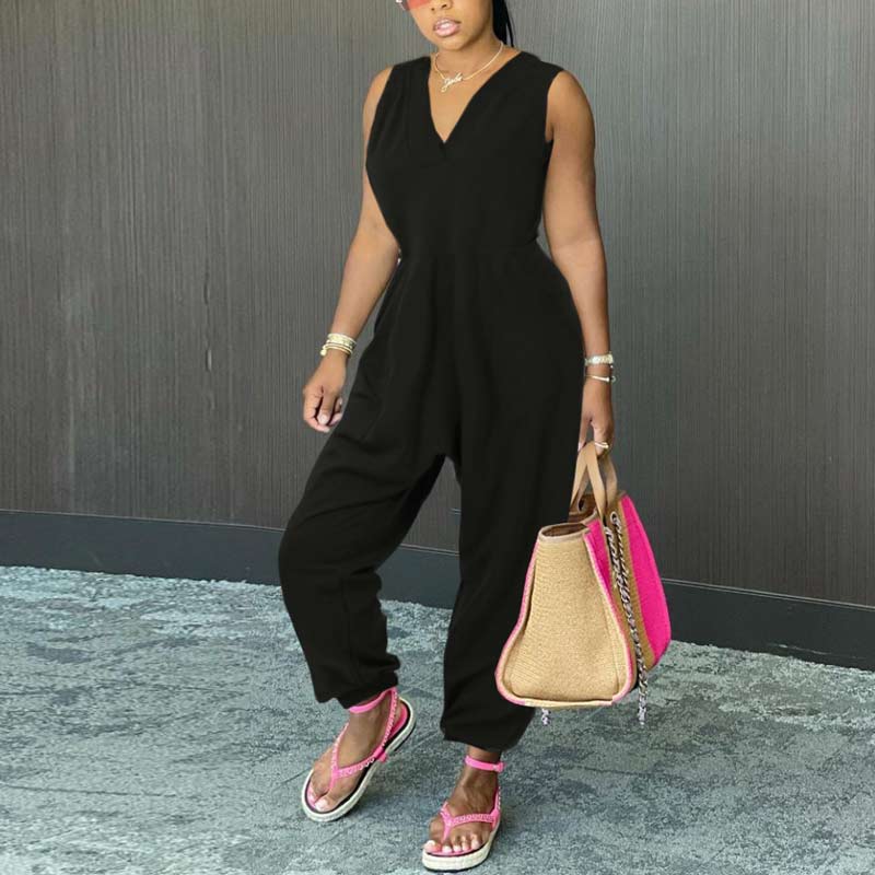 Solid Sleeveless V-Neck Casual Jumpsuit