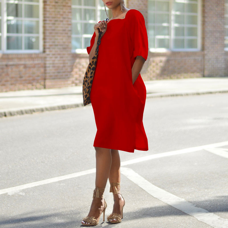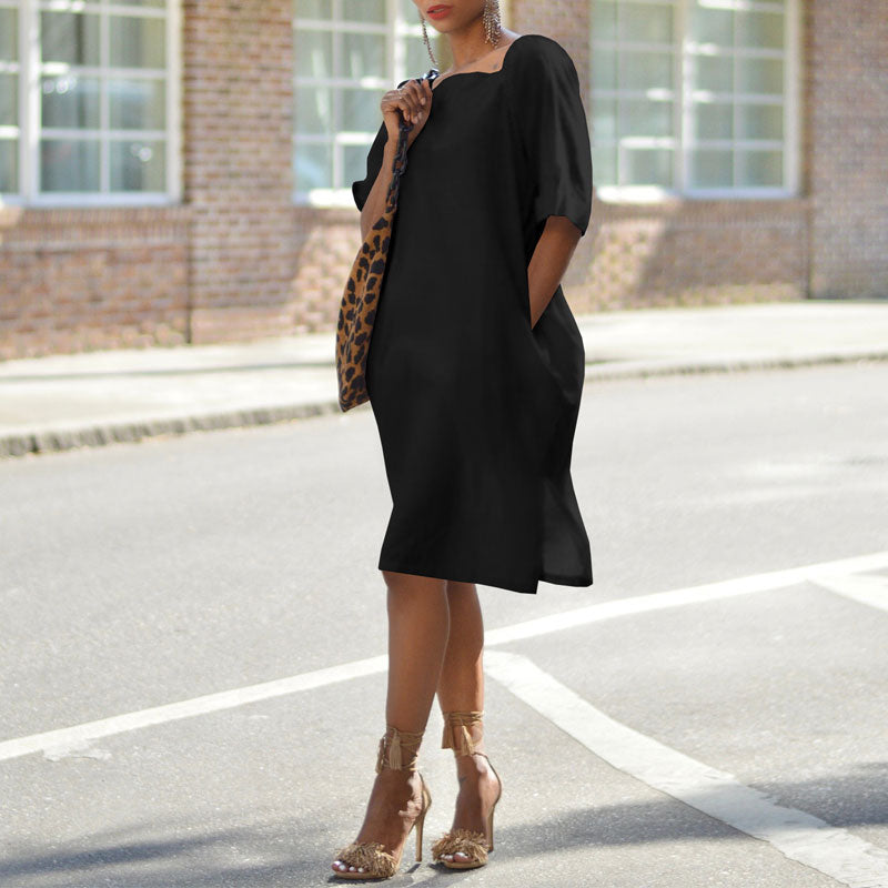 Solid Knotted Back Pocket Design Loose Dress