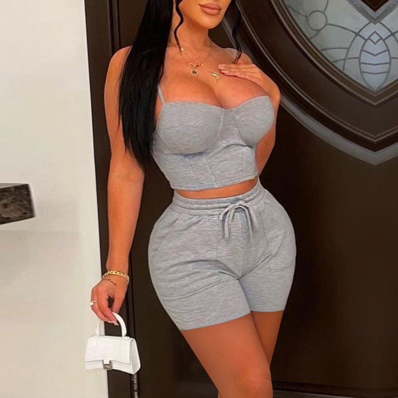Basic Solid 2PCS Shorts Set