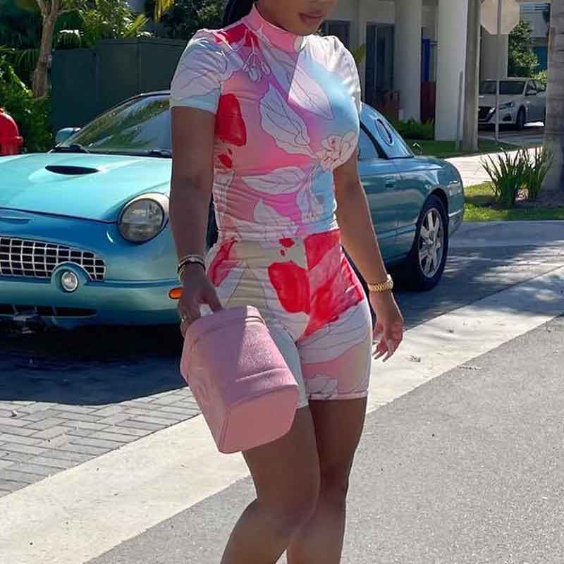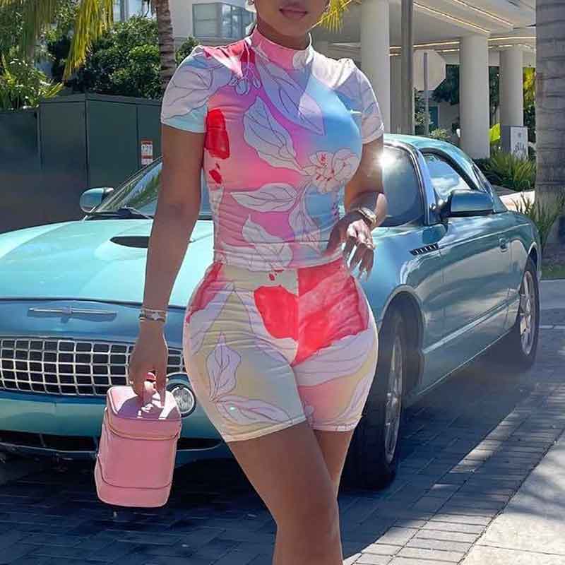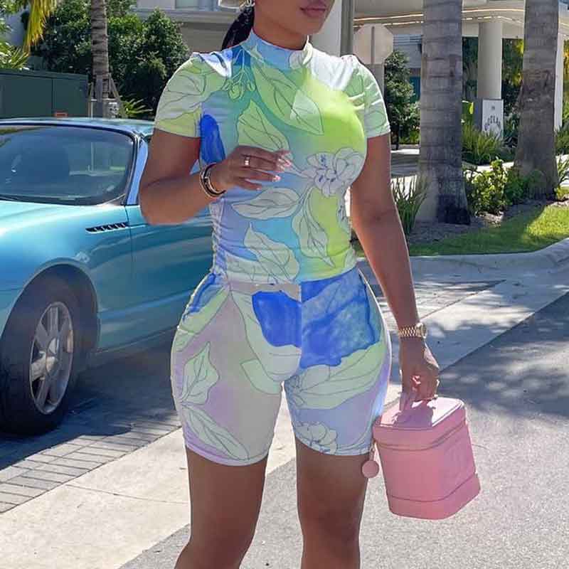 Leaf Print 2PCS Shorts Set
