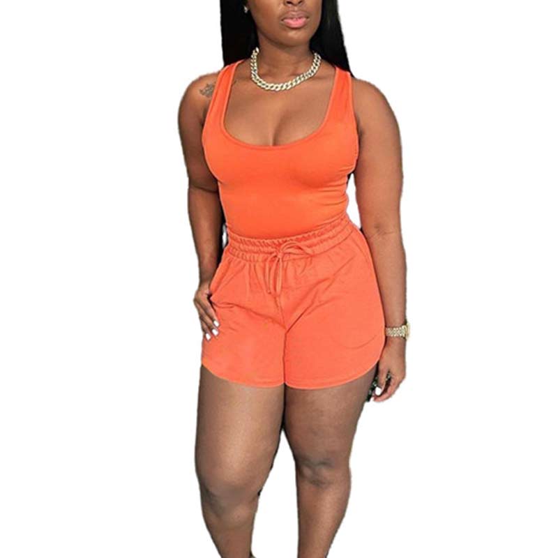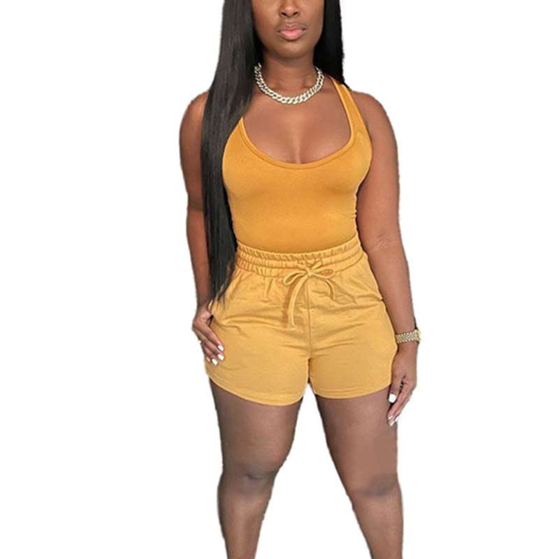 Solid Sleeveless Tank Top & Drawstring Shorts Set