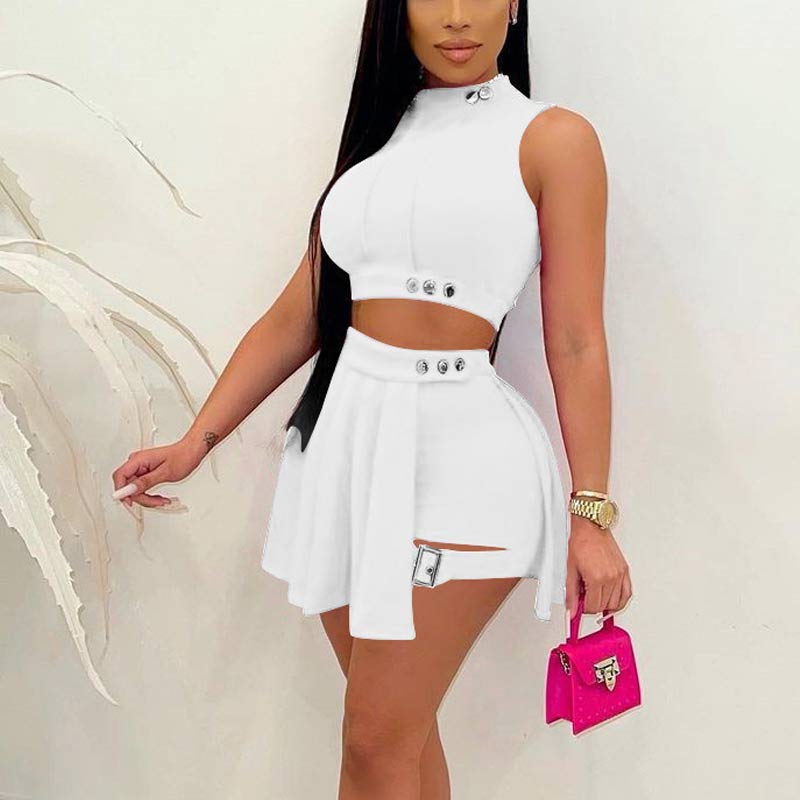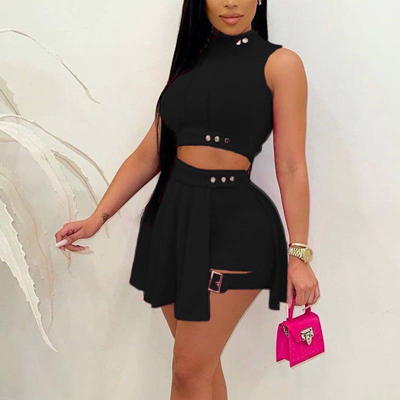 Solid Sleeveless Turtleneck Shorts Set