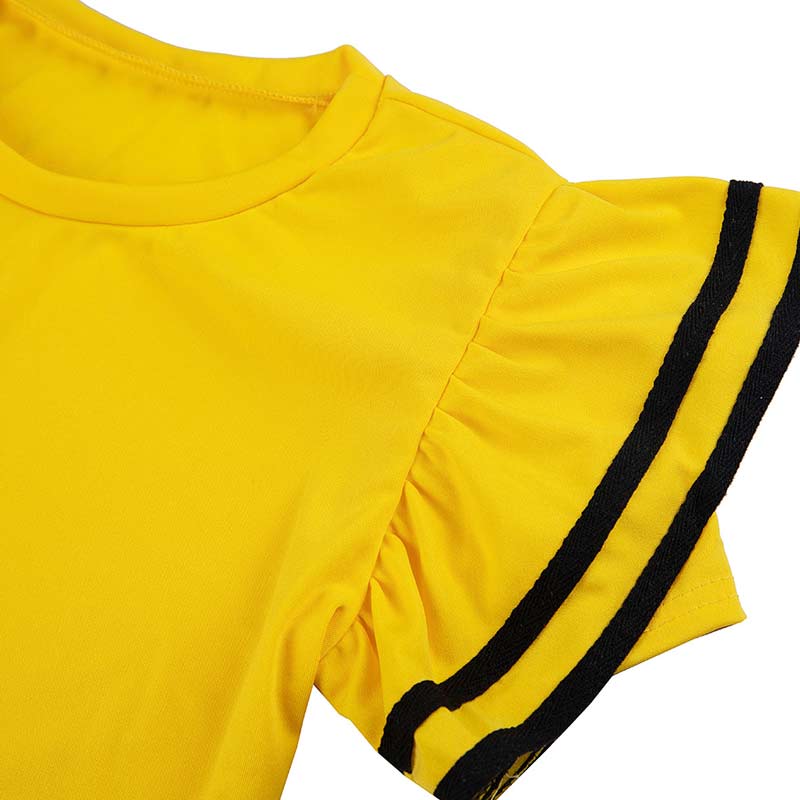 Striped Ruffle Design Short Sleeve Two Piece Shorts Set