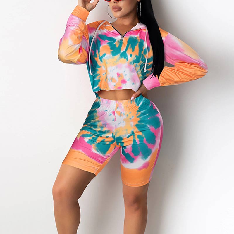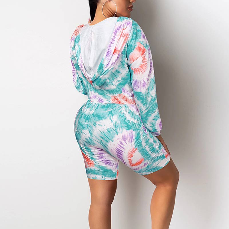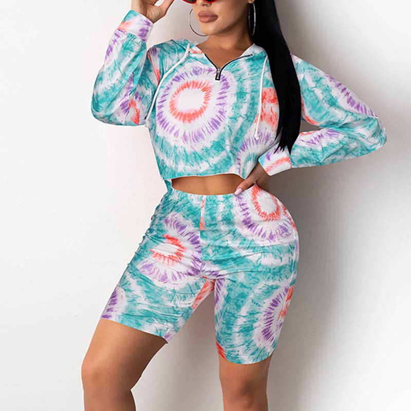 Tie Dye Print Hoodie Crop Top & Shorts Set