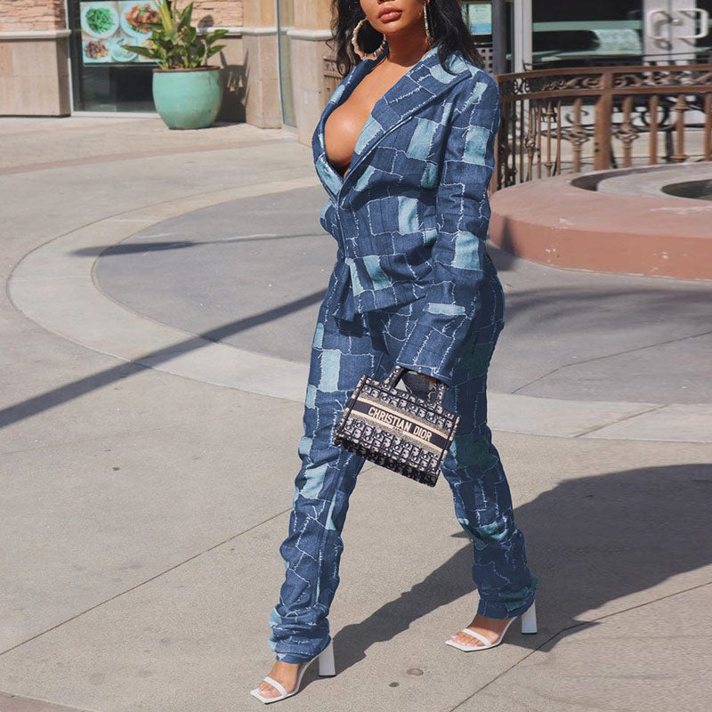 Colorblock Turn-Down Neck Long Sleeve Two Piece Set