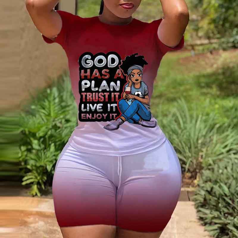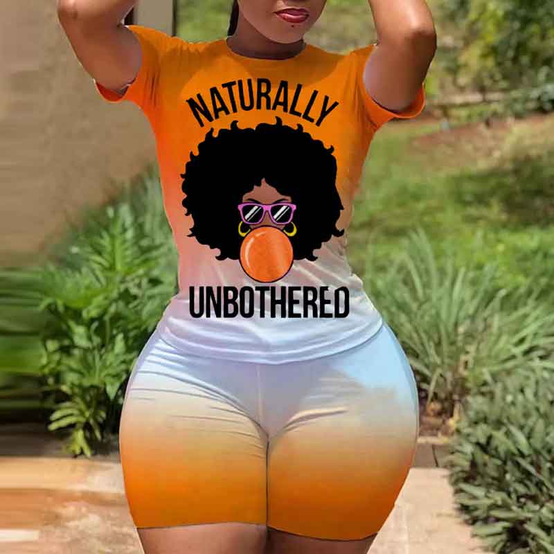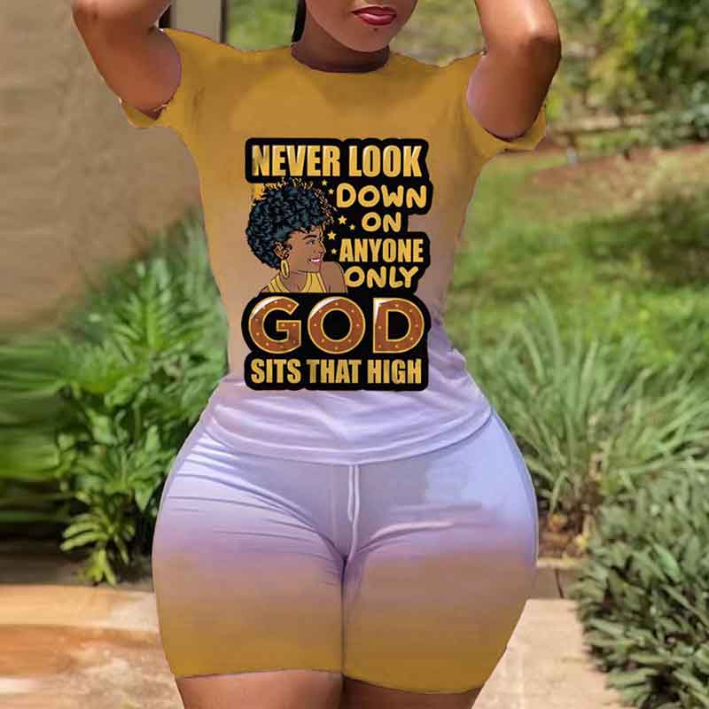 Gradient Color Letter Print 2PCS Shorts Set