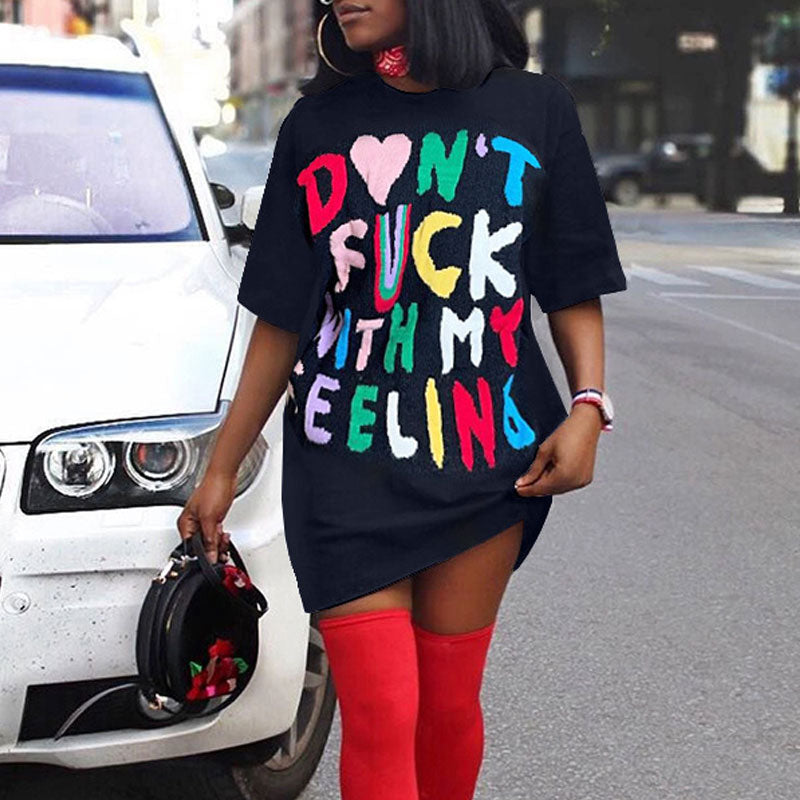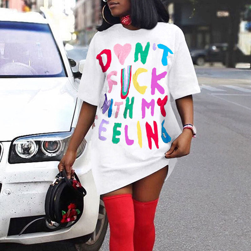 Letter Print Short Sleeve Loose Dress