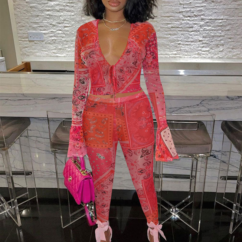 Paisley Pattern Flared Sleeve Top & Pants Set