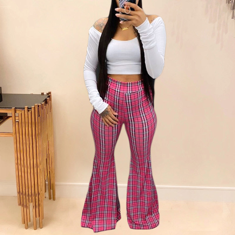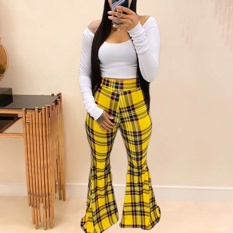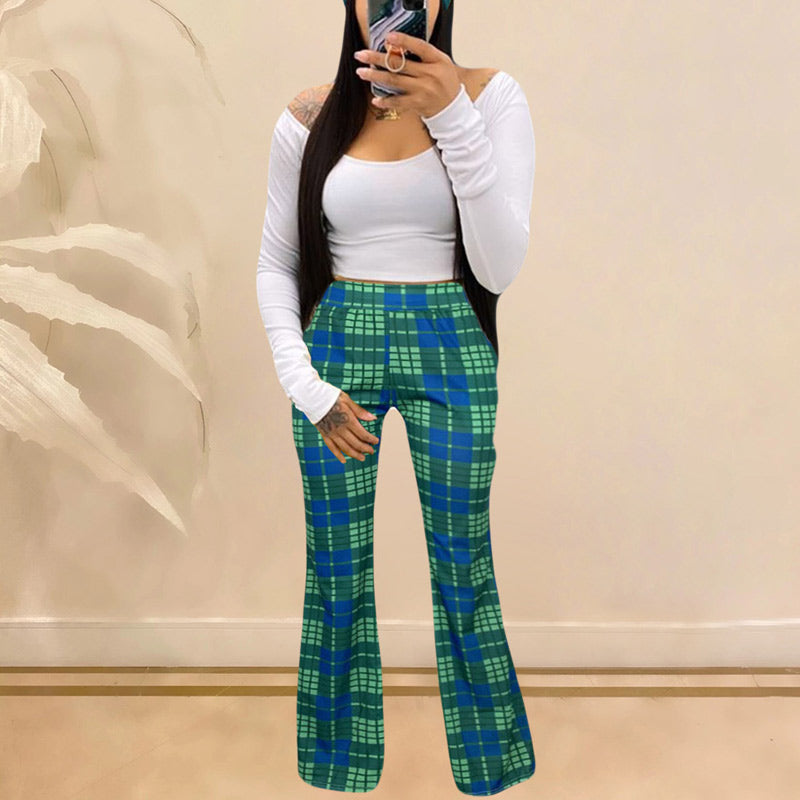 Plaid Colorblock Headband & Off Shoulder Top & Pants 3PCS Set