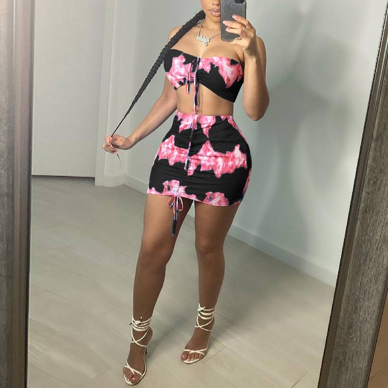 Print Lace Up Two Pieces Set