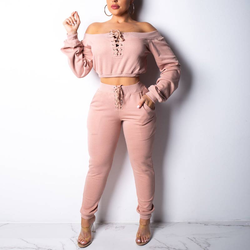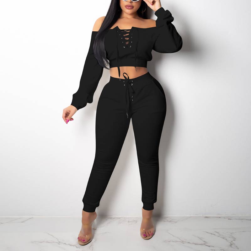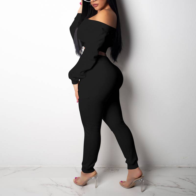Solid Off Shoulder Long Sleeve Two Piece Set