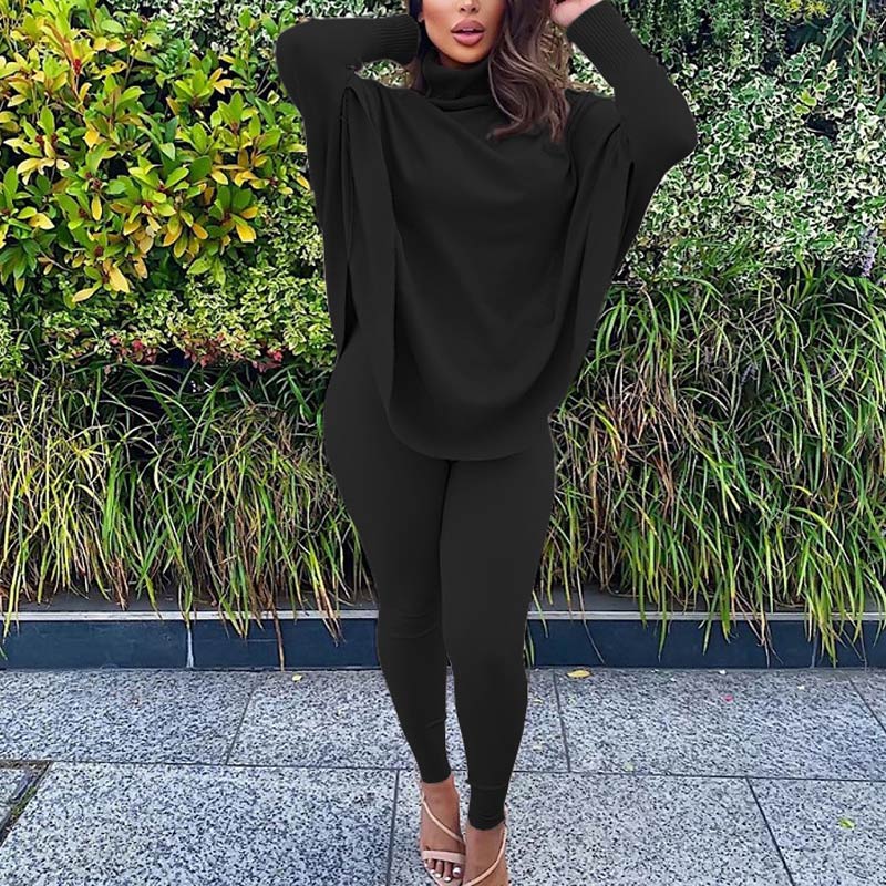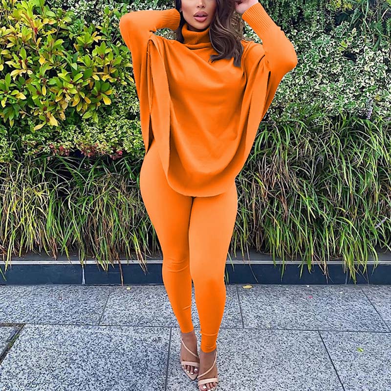 Solid Turtleneck Bat Sleeve Knitted Top & Pants Set